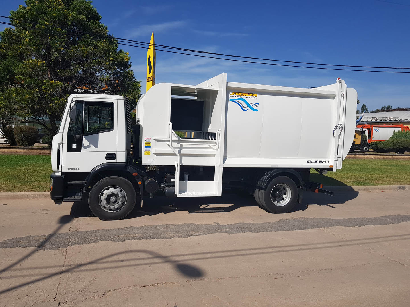 Equipo recolector compactador, montado sobre camión, apto para servicio de recolección de residuos sólidos urbanos por métodos de carga manual sobre ambos laterales del equipo.