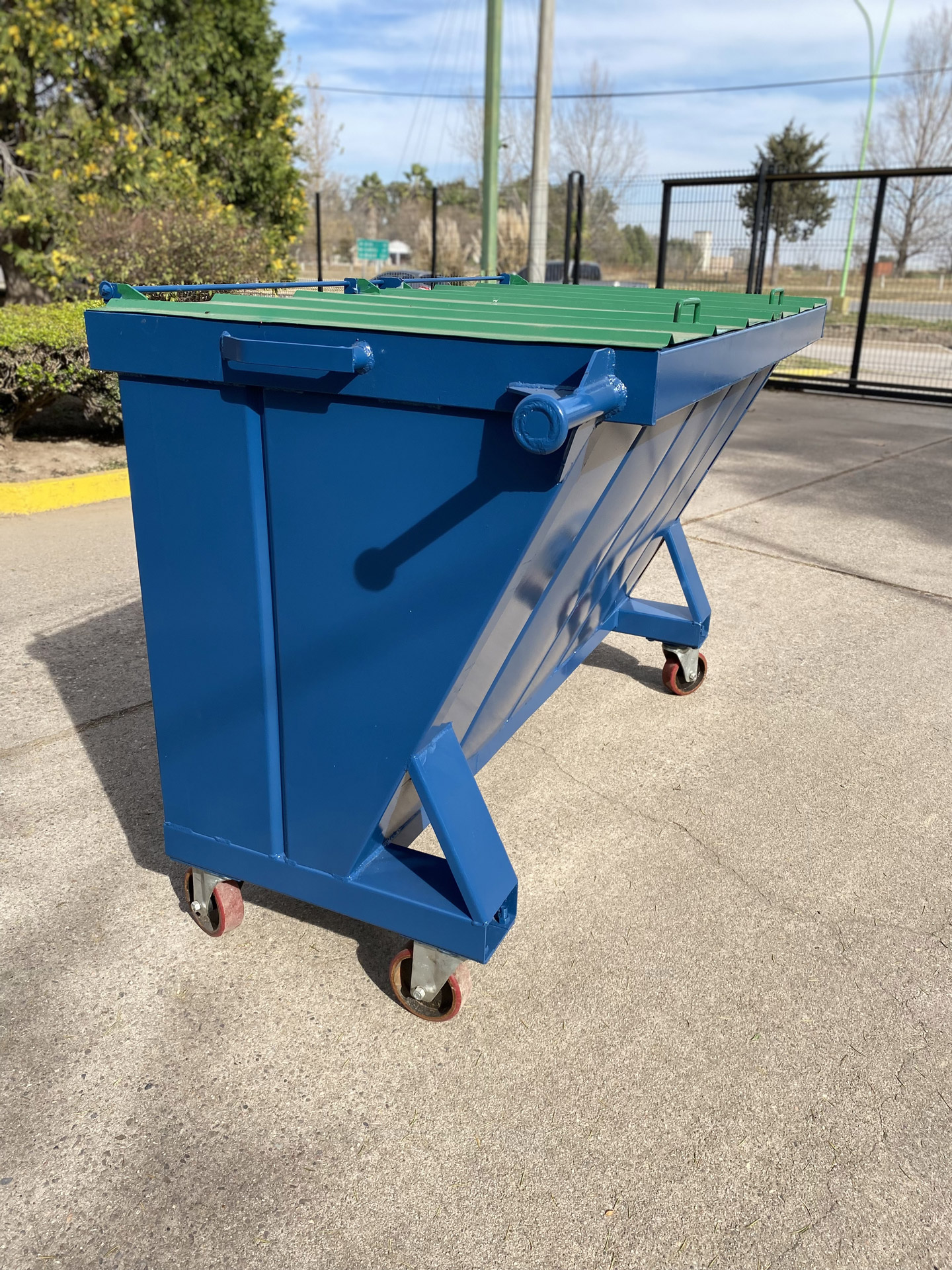 Apto para operar con recolectores de carga trasera con sistemas de izaje tipo estribo y/o malacates hidráulicos a cable / a cilindros o tambor. Construido en chapa espesor general 2,60 mm, con refuerzos estructurales de acuerdo a solicitaciones. Laterales con nervaduras especiales (punta de diamante) que les otorga mayor resistencia.
